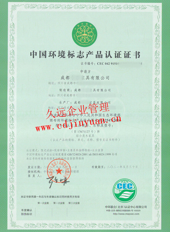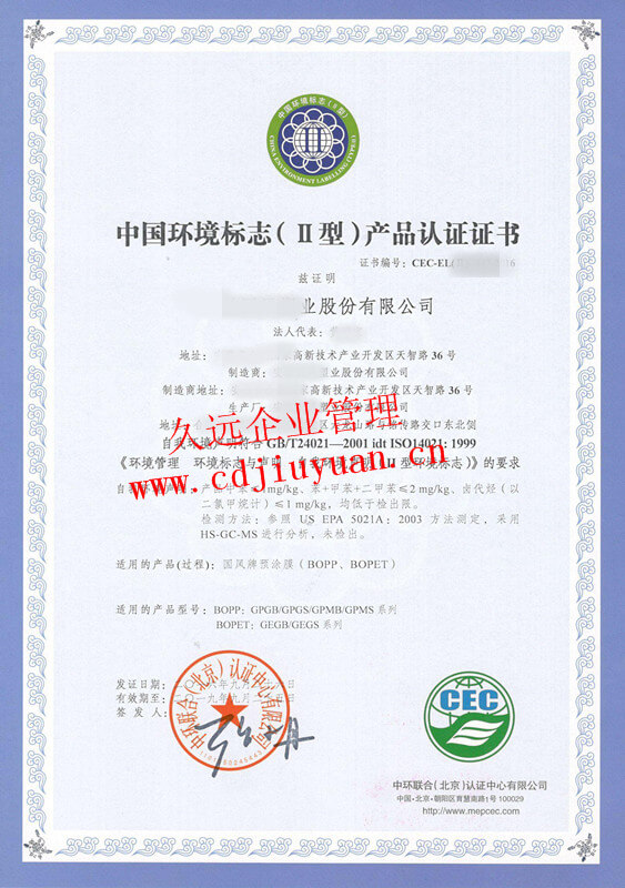 中國環(huán)境標志產(chǎn)品認證證書(十環(huán)認證)