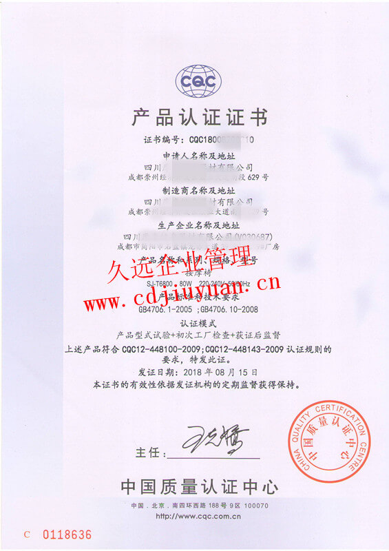 CQC標志產(chǎn)品認證證書